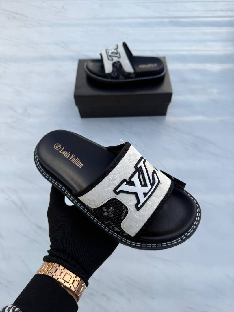 Lou-is-vuitton-black-premium-quality-stylish-men-flipflop white